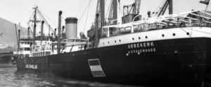 The “MS Abbekerk” was Dutch merchant vessel that had a short but eventful career in the first years of the Second World War. The ship was only 1,5 years old when it was heavily damaged in London during the Blitz in 1940 and it took half a year to be repaired. Being a fast ship for its time she mainly sailed independent or in fast military convoys. She supplied the British in Egypt in June 1941 and early 1942 she was in Malaya and the Dutch East Indies during the fall of Singapore and Java. There she took part in the evacuation of US and Australian troops and civilians from Tjilatjap to Fremantle. In August 1942 the Abbekerk was torpedoed and sunk 700 miles southwest of England by U-604.